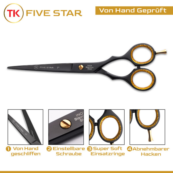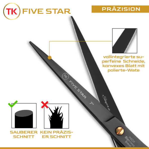 TK FIVE STAR Supra Professionelle 7″ extra scharfe Schwarze Friseurschere Haarschere